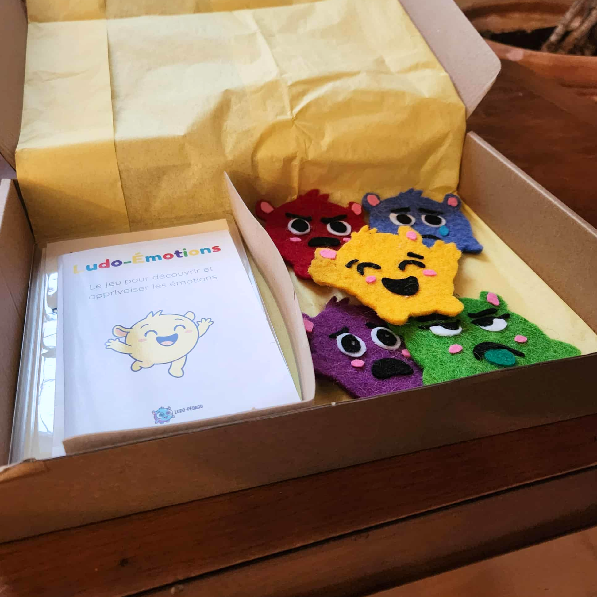 • 5 personnages en feutrine représentant : Joie, Tristesse, Colère, Peur, Dégoût