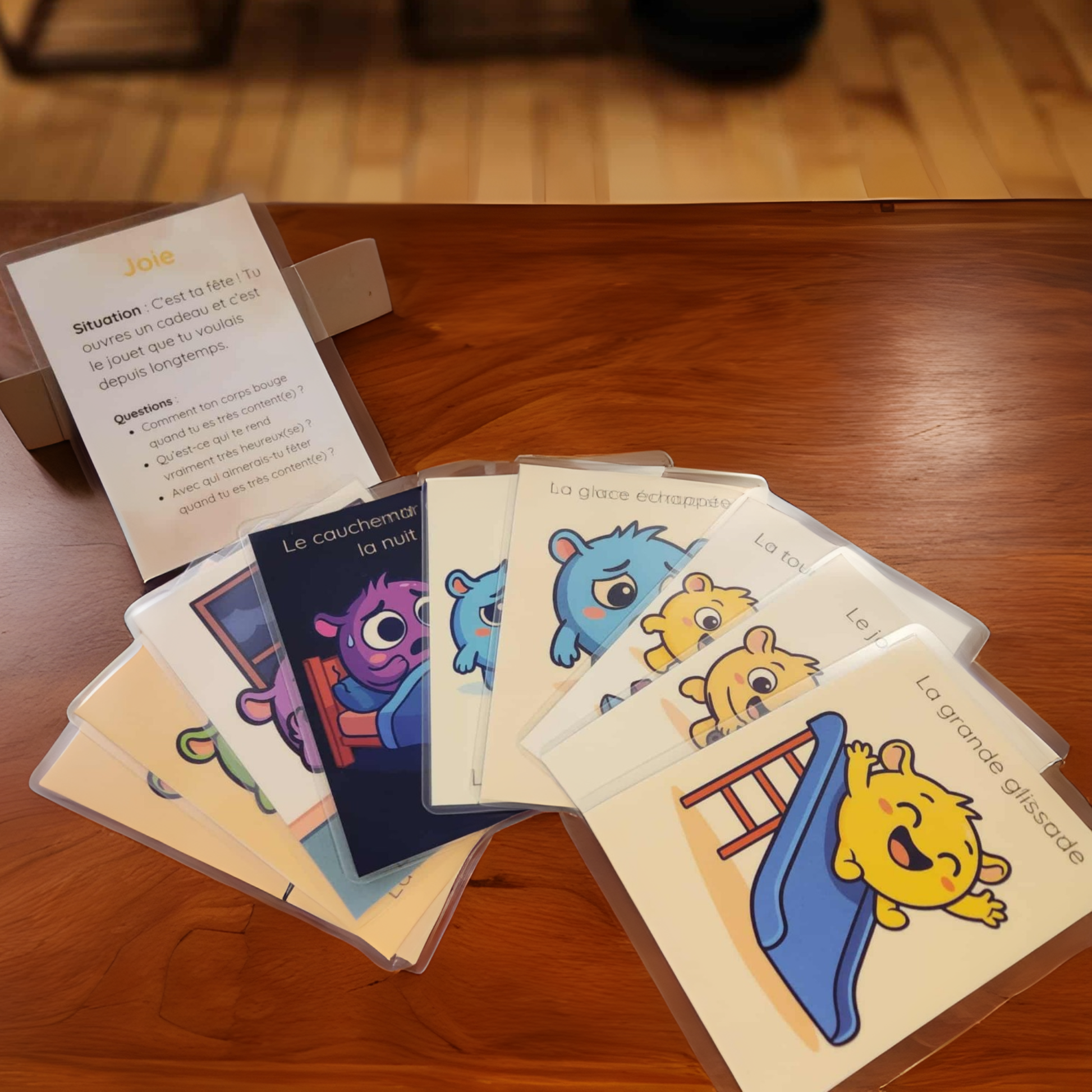 • Verso : questions simples liées à l’émotion pour encourager la discussion